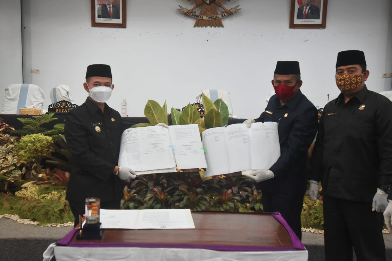 Sungailiat Bangka , BangkaBelitung — DPRD Kabupaten Bangka menggelar rapat paripurna pengesahan 3 Raperda dan penetapan Propemperda Tahun 2021 di Ruang Rapat Paripurna Gedung DPRD Jl.A.Yani Komplek Perkantoran Bupati Kabupaten Bangka, Kamis (31/12/2020). Tiga Raperda tersebut adalah Raperda Pengelolaan Zakat, Raperda Protokol Kesehatan Dalam Penanganan Corona Virus Desease 2019 dan Raperda Pencabutan Peraturan Daerah Kabupaten Bangka Nomor 12 Tahun 2007 tentang Pembentukan Lembaga Kemasyarakatan di desa dan kelurahan.