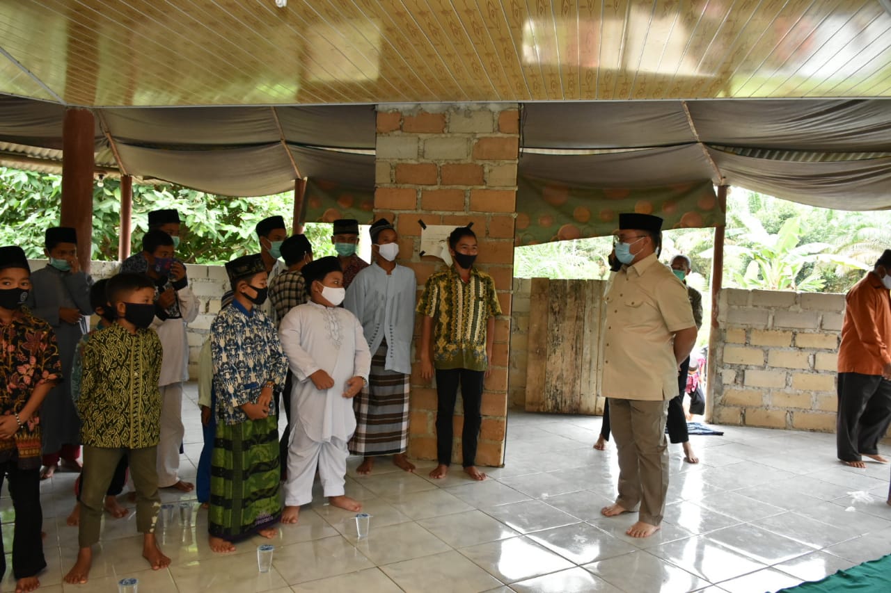 Bapak datang ke sini ingin melihat kalian semua, bapak senang kalian belajar di sini. Semoga nanti kalian menjadi anak saleh dan berakhlak mulia,” ujarnya.