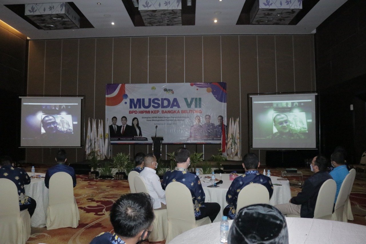 Melalui video conference via aplikasi Zoom, pria yang sering disapa Bang ER ini menunjukkan semangatnya untuk pemuda dengan mendukung diadakannya kegiatan Musda VII Badan Pengurus Daerah Himpunan Pengusaha Muda Indonesia (HIPMI) Provinsi Kepulauan Bangka Belitung di Hotel Sol Marina pada hari Rabu (27/01/2021).