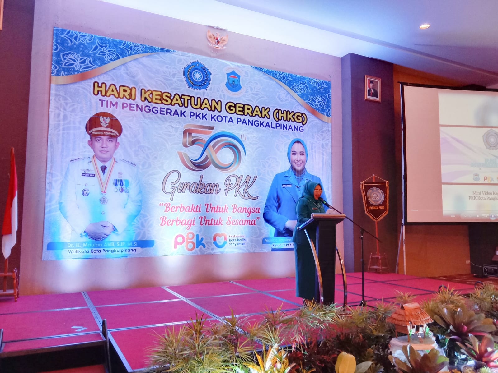 “Peringatan Hari Kesatuan Gerak PKK ke-50 kali ini menjadi sangat istimewa. Hari ini merupakan peringatan tahun emas gerakan PKK di Indonesia. Melalui peringatan HKG PKK kali ini, saya menginginkan agar gerakan PKK kembali pada ruhnya, yaitu sebagai gerakan masyarakat untuk pemberdayaan keluarga”, ungkap Ketua TP PKK Kota Pangkalpinang, Monica Haprinda Maulan Aklil, S.IP, M.Si dalam sambutan.